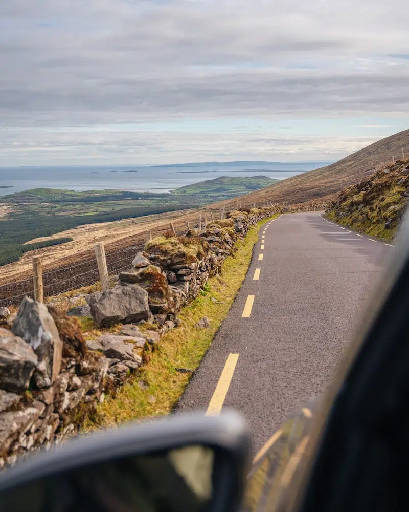 Abseits der Autobahnen zeigen sich die eigentlichen Herausforderungen beim Autofahren in Irland. Viele Straßen sind deutlich schmaler als in Deutschland und haben meist keinen Mittelstreifen. Die Fahrbahn wird zudem oft durch kleine Steinmauern begrenzt und es gibt viele enge Kurven.