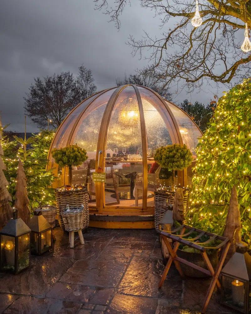 Ein besonderes Genusserlebnis, das wunderbar zu einem Besuch des Weihnachtsmarktes auf dem Hofgut Dagobertshausen passt, ist ein Abendessen im winterlichen Iglu. Im kleinen, privaten Rahmen von acht Personen werden festliche Menüs aus der Waldschlösschen Küche serviert.
